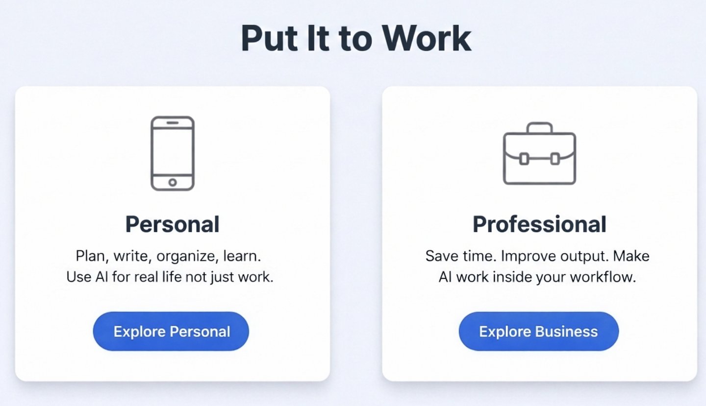 No jargon. No overwhelm. Just practical AI that works.